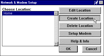 Figure 2: Network & Modem Setup WIndow - Clicking on "Create Location"